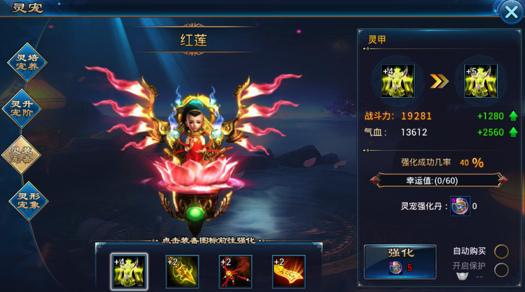 1、 灵宠装备强化需消耗灵宠强化丹;